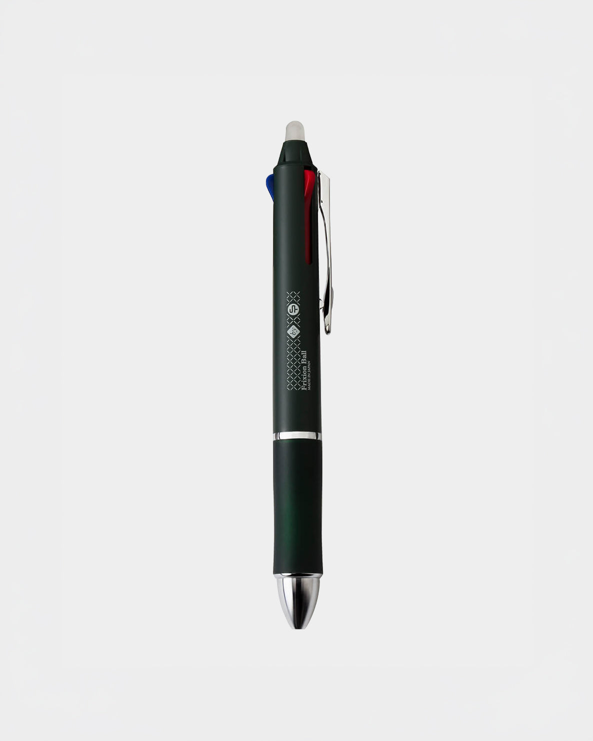 The CDT Frixion Ball 3 combines three ink colors in one clean instrument—black, red, and blue—each powered by Pilot’s thermo-sensitive gel technology.