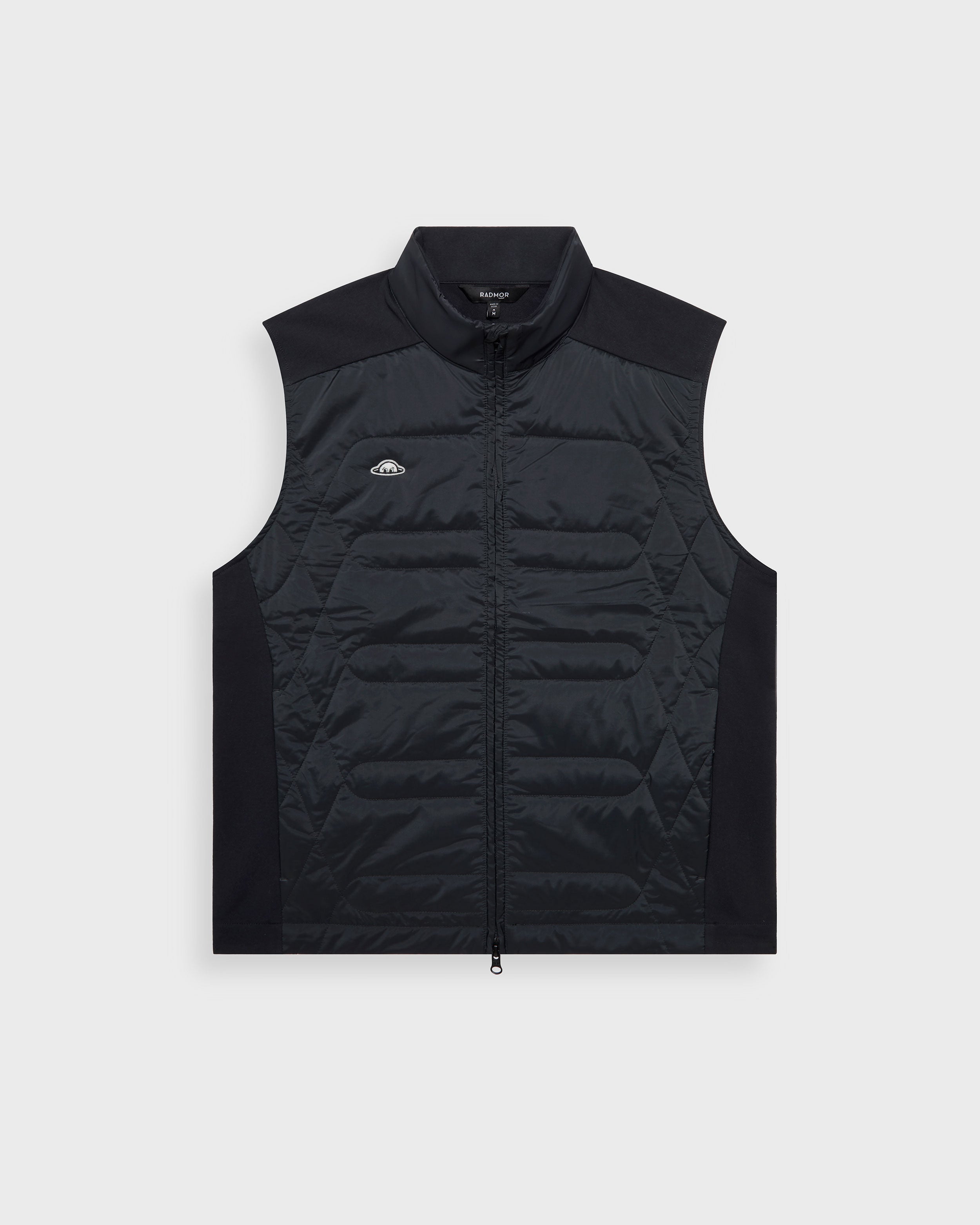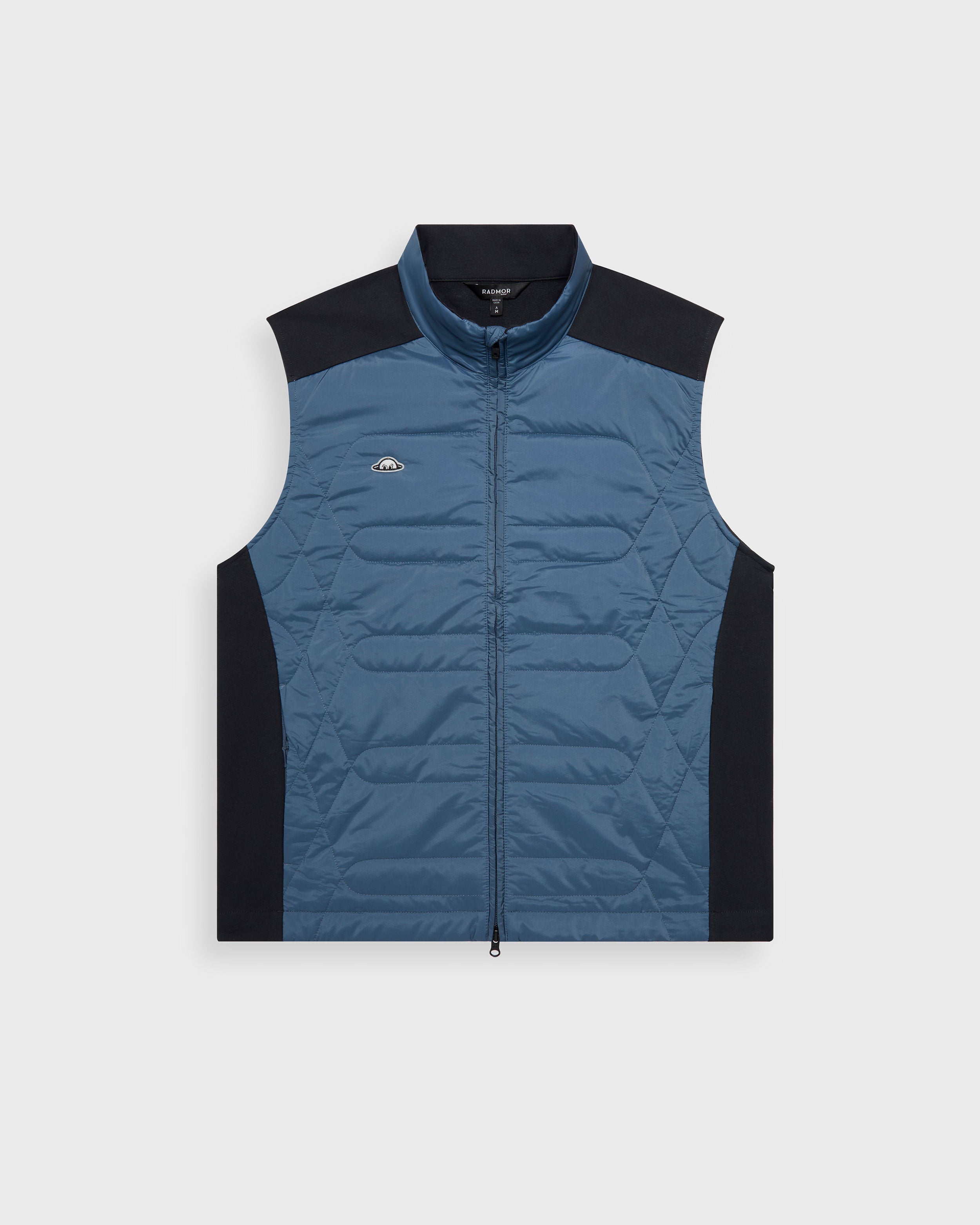 The Anderson Hybrid Vest is a lightweight, recycled polyester three-season vest. Made from a recycled nylon + elastane blend, a recycled plastic bottle fill insulation, and a knit cotton/elastane back, the Anderson provides moisture and wind resistance combined with 4-way stretch comfort. A pair of zipper pockets can be found at either side seam, in addition to a hidden interior chest zipper, and Radmor’s signature ‘Ball-Rad’ pocket at the wearer’s back right.