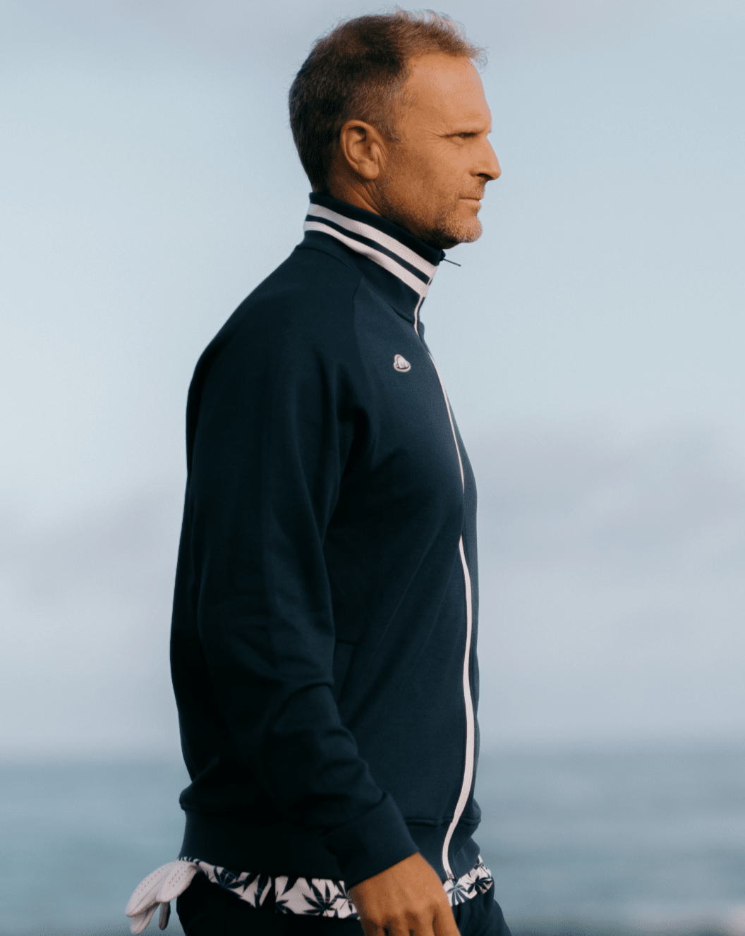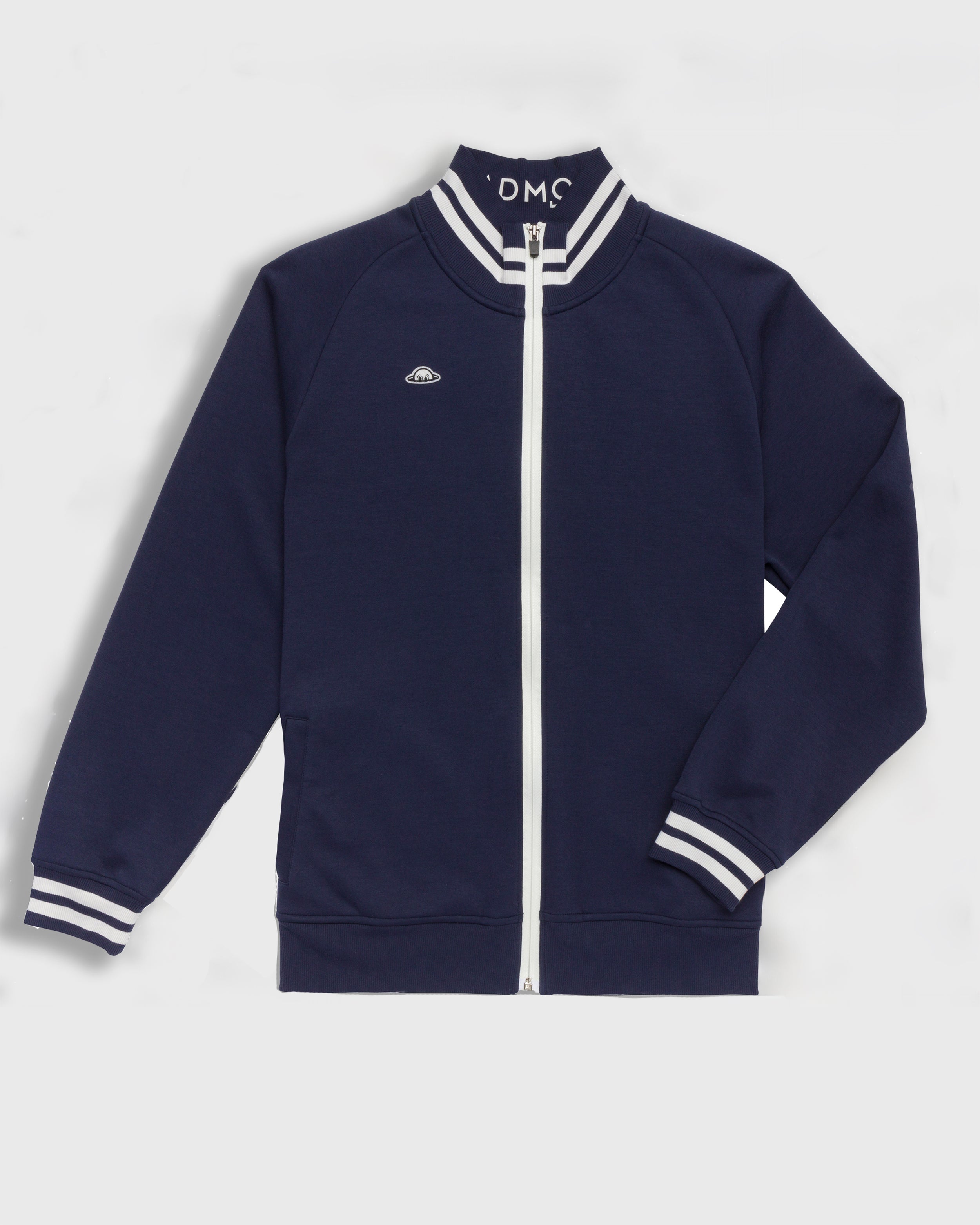 The Chappie Jacket is a lightweight 90's style field jacket named after our first PGA Tour player, Kevin Chappell. Made from a thicker blend of Peruvian pima cotton + certified recycled REPREVE which provide the best in comfort and performance. A contrast stripe rib collar, band and cuff detail along with an interior neck logo print are paired with two single welt pockets found at either side seam and a front zipper for easy access.