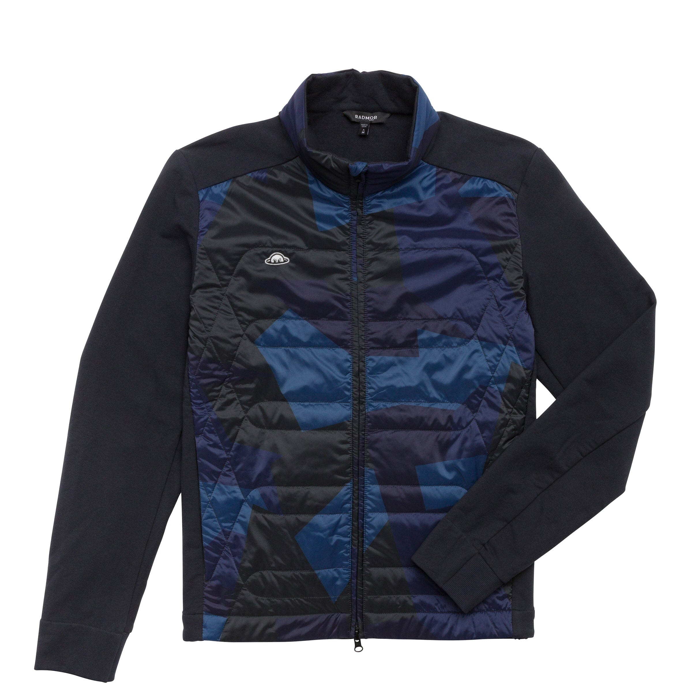 The Anderson Hybrid Jacket is a lightweight, recycled polyester three-season jacket. Made from a recycled nylon + elastane blend, a recycled plastic bottle fill insulation, and a knit cotton/elastane back, the Anderson provides moisture and wind resistance combined with 4-way stretch comfort. A pair of zipper pockets can be found at either side seam, in addition to a hidden interior chest zipper, and Radmor’s signature ‘Ball-Rad’ pocket at the wearer’s back right.